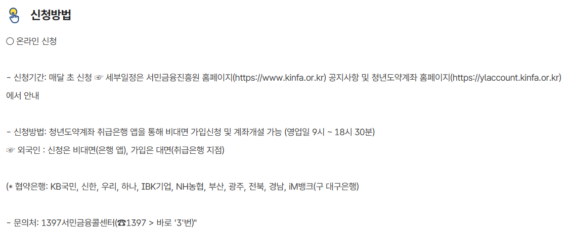 - 온라인 신청: 청년도약계좌 통합포털